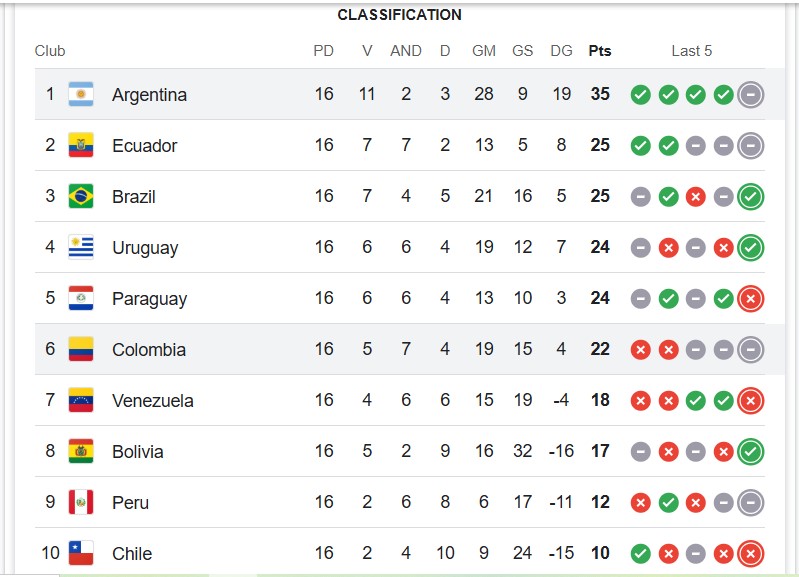 - Argentina has already secured qualification and top spot.