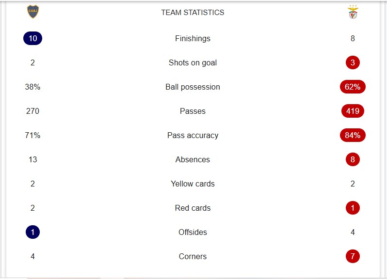 But once Boca Juniors found their rhythm, they struck with lethal precision. In the 21st minute, left-back Lautaro Blanco danced past Florentino with a nutmeg and delivered a low cross. Miguel Merentiel beat António Silva to the ball and finished clinically into the center of the goal. Boca Juniors 1-0 Benfica.