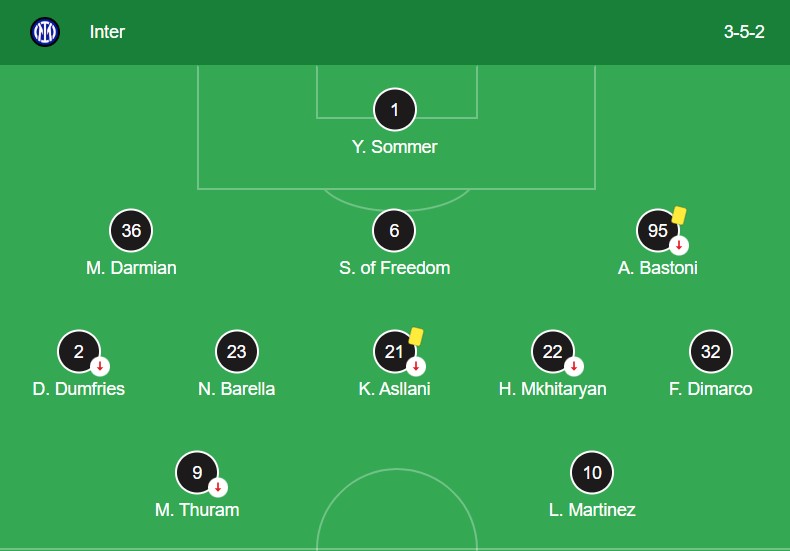 - Inter Milan (60% possession): Controlled midfield with Barella and Mkhitaryan, but lacked penetration.