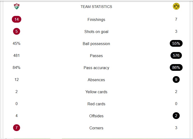 In stoppage time, at 90’+3′, Niklas Süle unleashed a strike from distance that Fábio parried brilliantly. Dortmund had two consecutive corners, but the Fluminense defense stood tall. The match ended at 90’+7′, with both teams leaving the pitch with hard-earned points.