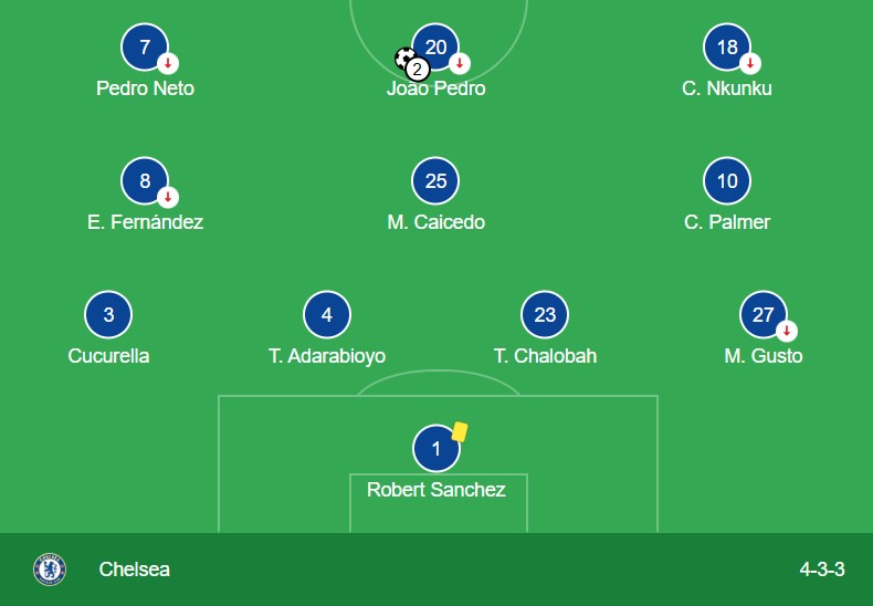 Chelsea deployed a flexible 4-3-3, with Cole Palmer drifting between lines and Enzo Fernández dictating tempo. Defenders like Cucurella and Chalobah were strong in coverage and build-up. The real weapon was transition play: João Pedro and Pedro Neto used the flanks to devastating effect.