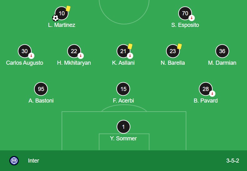 - Asllani (Inter) – late challenge (issued in second half at 61’).