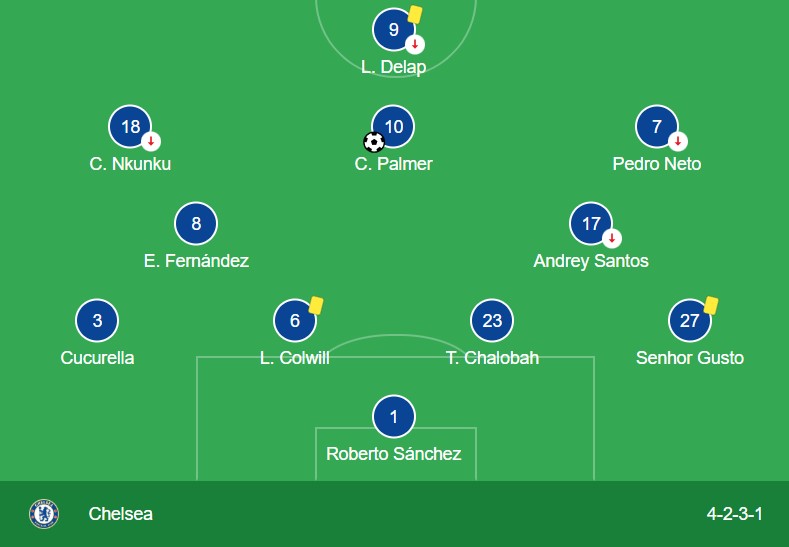 Chelsea started in a 4-2-3-1 formation, with Palmer, Nkunku, and Pedro Neto rotating in the attack. High pressing and rapid passing exchanges destabilized Palmeiras. Enzo Fernández was vital in midfield with excellent distribution.