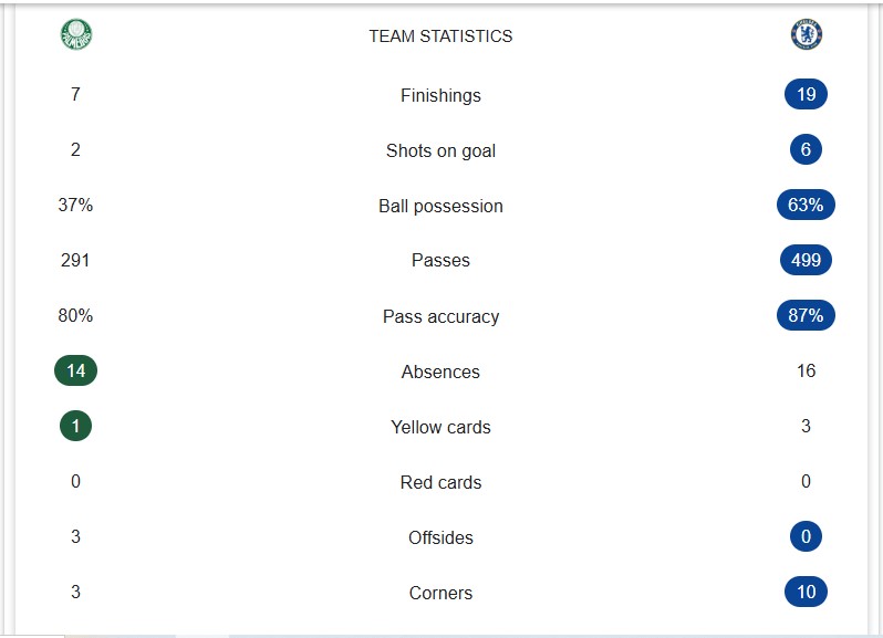 At the 83rd minute, in a stroke of misfortune for Palmeiras, Malo Gusto sent in a low cross that deflected off Agustín Giay, bounced off Weverton, and into the net: an own goal, sealing the 2×1 win for Chelsea. Palmeiras pushed with Paulinho and Raphael Veiga in the final moments but to no avail.