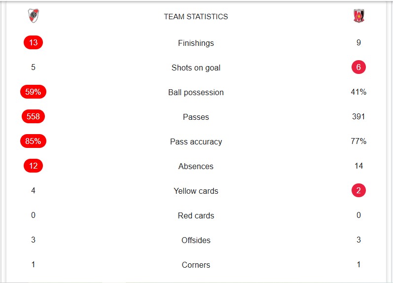River ended the half with 61% possession, 7 shots, and total control of tempo and positioning.